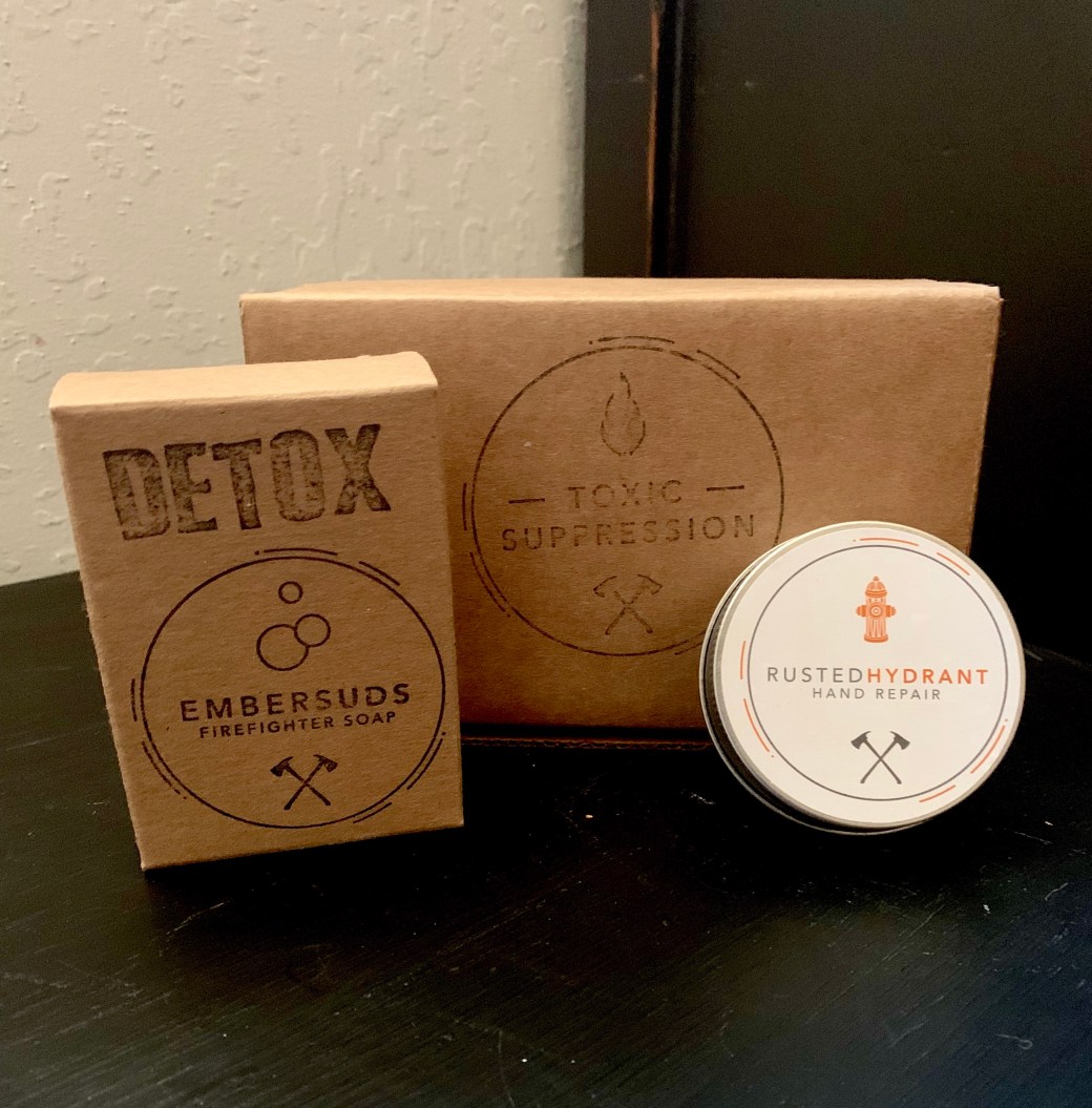 Now let’s talk about Toxic Suppression. They offer a way to help our firefighter’s decon. Their ember suds soap bars come in a detox bar and a daily bar. The charcoal in these soap bars help the body detox the harmful chemicals absorbed through the skin. Toxic Suppression offers their soap bars in full and half sizes making it nice to add in an out of county bag, for those big fires. As, well as keeping one at the station. I must say they smell pretty good too. A few other things they offer are hand repair for their hard-working hands, stickers, hats and shirts. This is another great option.