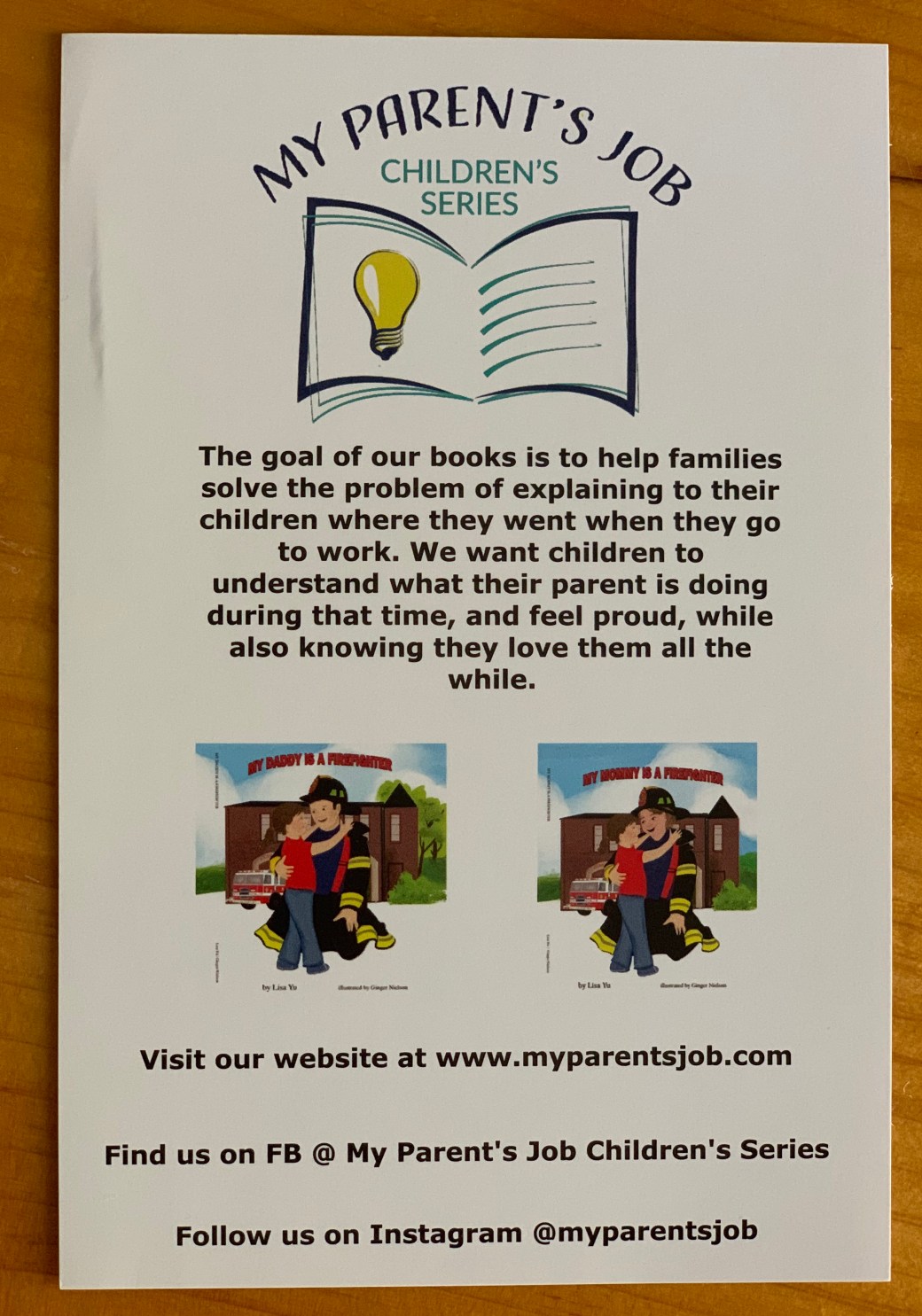 This month I wanted to bring you another featured blog. Last month’s we learned about Fire Mom a business created from the love of a fire mom and sister. This month however, I want to talk about another important aspect of the fire family. I have talked about my struggles as a mom and have even written a couple of blogs on the struggles of my children. This months featured fire owned company is My parents Job. We are huge book readers in my house so this company just gives me all the feels. They have created a book series to help bridge the gap in helping our kiddos understand what their fire moms or fire dads do. They put into words and illustrations a way kids get a really good perspective. Our children are so important and I am excited to introduce you to this company!